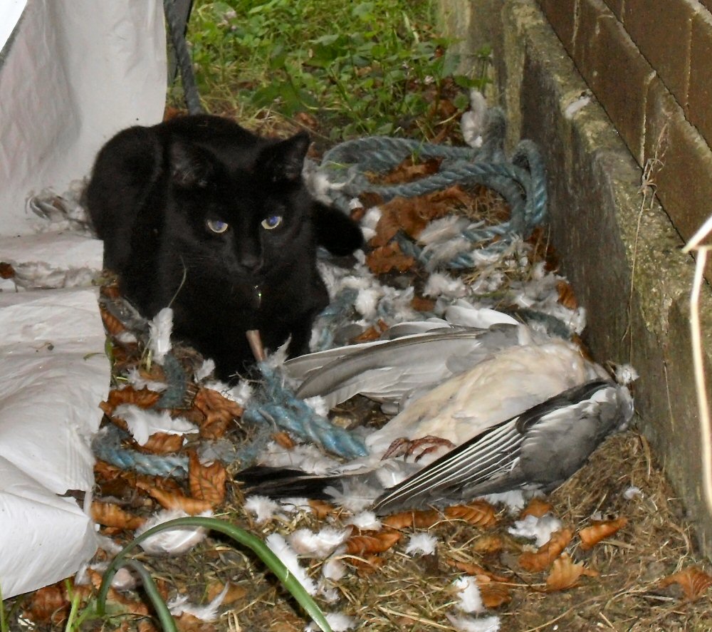 After the success of his mouse exploits he has moved up to massive pigeons. Despite it being so large he could barely carry it, he attempted to bring it into the kitchen. His delight at his kill was boundless and two days later whilst I was teaching a new private student in the studio, I glanced out of the window to see him happily torturing a poor blackbird. "Please excuse me" I said politely, dashing in the house and instructing boyfriend to get it off him. Another broken neck. As a member of the RSPB and having a genuine fondness for birds, I am mortified by this behaviour. I think a louder bell on his collar may be necessary.