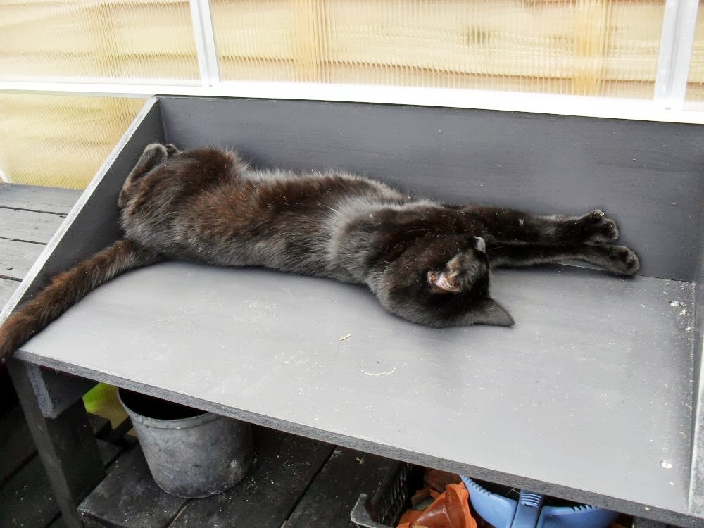 I also wasn't letting him bring that rabbit into the house. So he sat and ate it on the patio whilst the teen ate her shreddies, I took pity and temporarily suspended the 'no food on the sofa' rule. Just like last summer Gimlet has gone feral, living in the back field and dining on bunnies. As soon as it rains he comes back as if nothing has happened and he has always been a house cat.